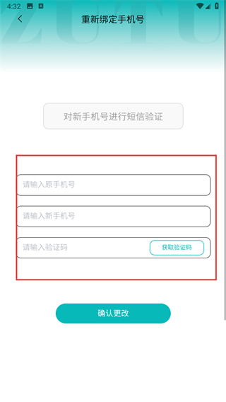 4、依次输入原手机号新手机号及验证码,点击确认。