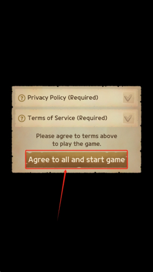 1、同意条款:勾选同意“隐私政策”和“服务条款”,然后点击“同意并开始游戏”。