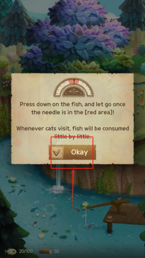 4、了解游戏提示:阅读游戏提示,了解如何进行钓鱼操作,然后点击“Okay”确认。