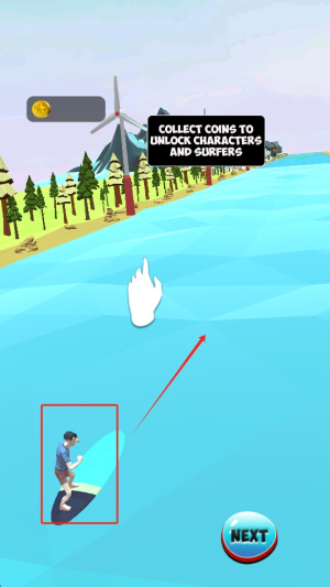 1、控制冲浪前进:进入游戏,通过滑动操作控制冲浪方向,熟悉平衡与转向技巧,在河道中保持稳定前进,开启冲浪之旅。