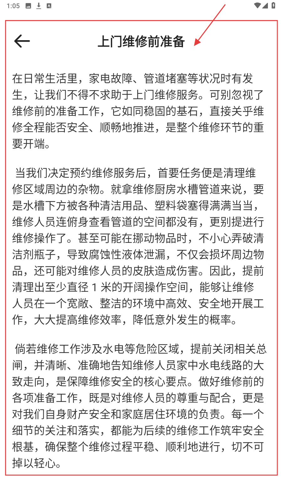 4、重点阅读【上门维修前准备】,清理操作空间、关总闸,保障维修安全高效。