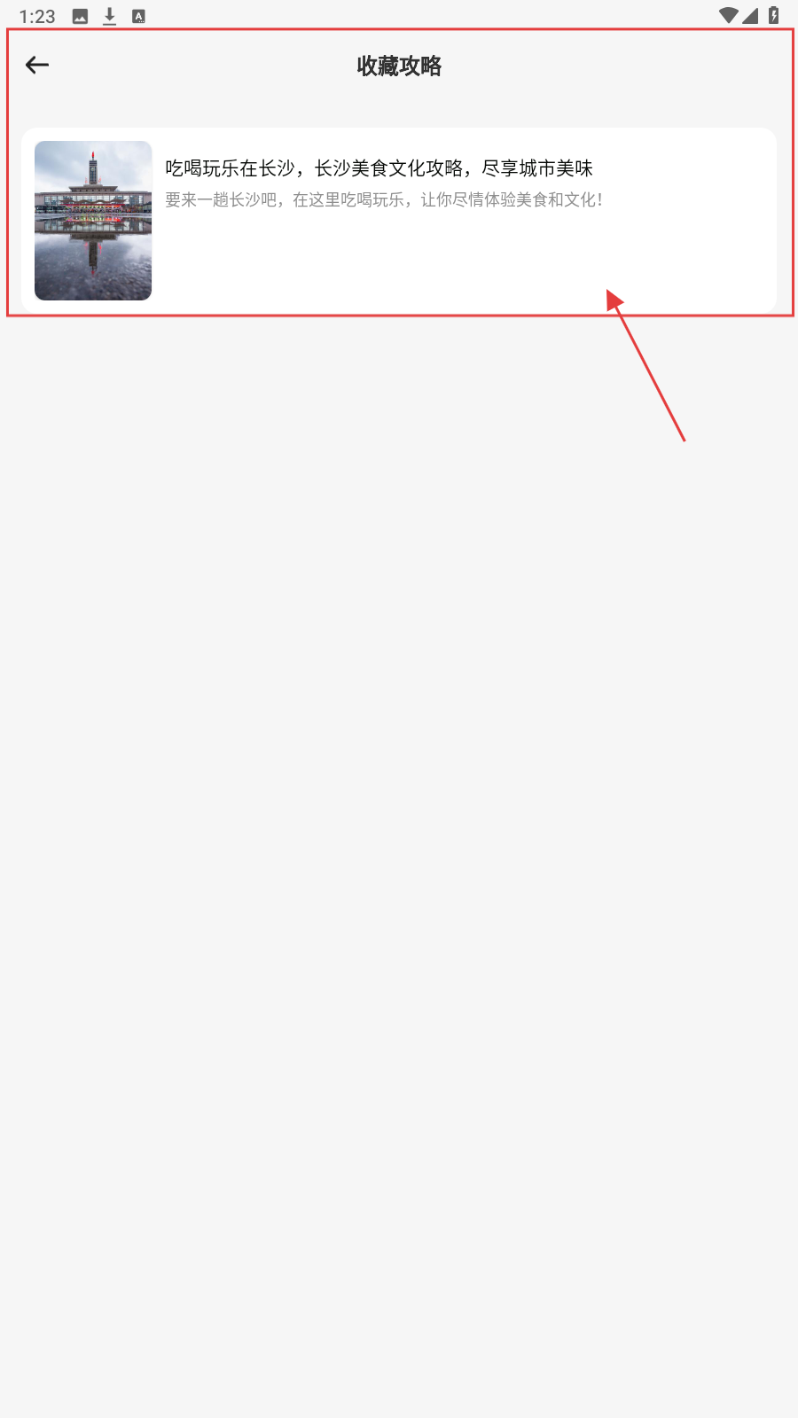 4、进入【收藏攻略】页,能快速找到已收藏的攻略(如长沙美食攻略),随时回顾。
