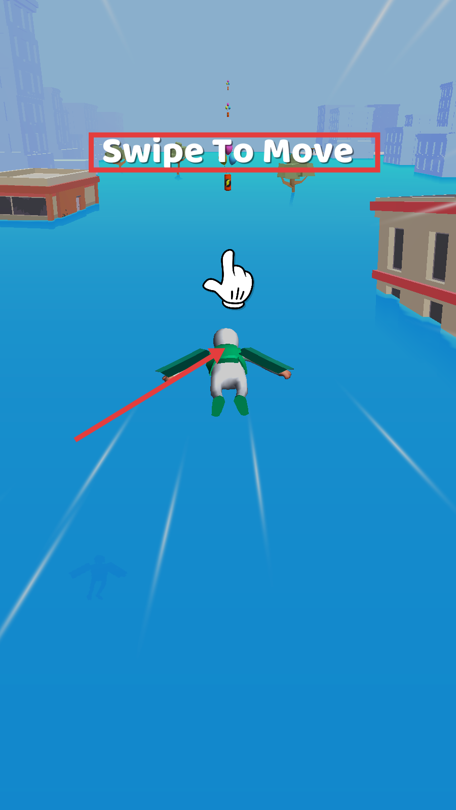 2、角色飞行过程中,按【SwipeToMove】提示滑动屏幕,控制角色移动方向,灵活避开障碍物。