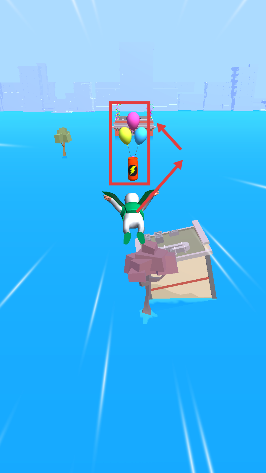 3、飞行时通过滑动屏幕操纵角色,躲避带有气球的障碍物确保角色的安全。