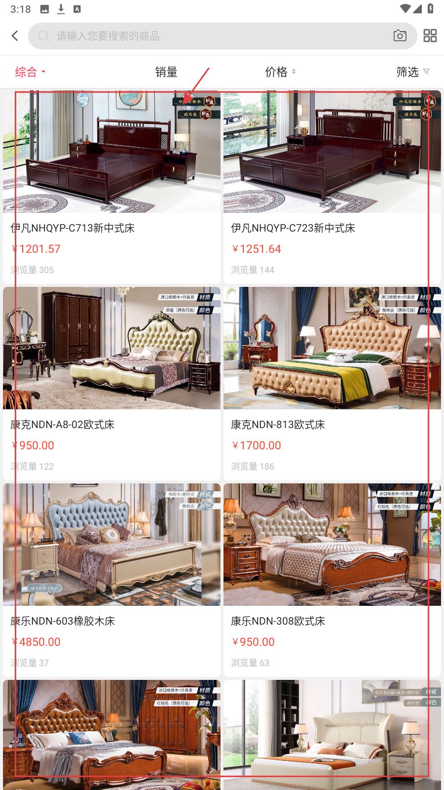 2、在分类页(如家庭用床),浏览款式(伊凡新中式床等),挑心仪款。