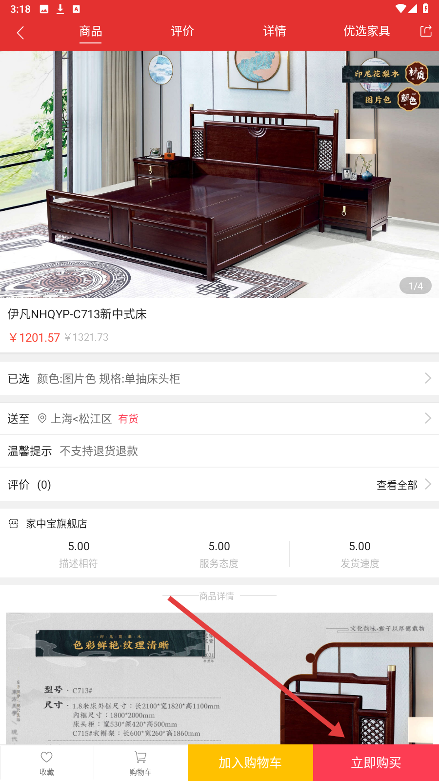 3、进入商品详情,选颜色、规格,点【立即购买】或【加入购物车】。