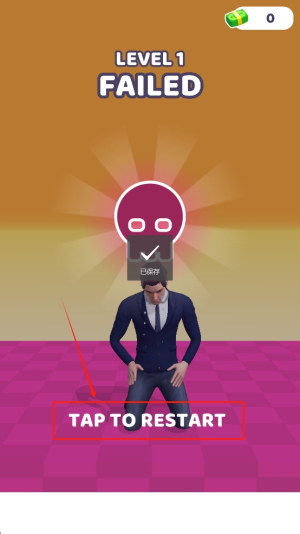 4、重新开始:如果游戏失败,点击“TAP TO RESTART”按钮来重新开始当前关卡。