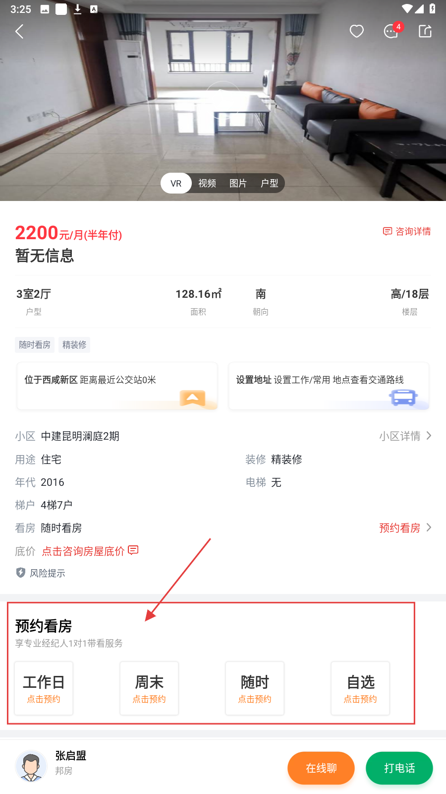 2、在线预约看房:直接与房源专属经纪人在线沟通看房细节,灵活预约实地看房时间,支持视频看房功能,避免反复奔波。
