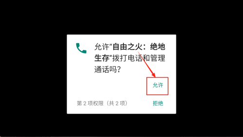 1、授权权限:点击弹窗中的“允许”,授予游戏电话与通话管理权限。