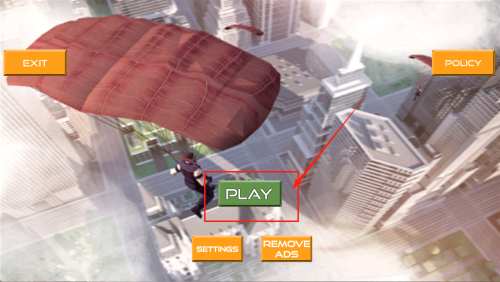 2、进入主菜单:在“EXIT POLICY PLAY SETTINGS REMOVE ADS”界面点击“PLAY”。
