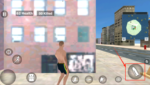 3、查看战况:左上角出现“62Health 00Killed”,确认当前血量与击败数。