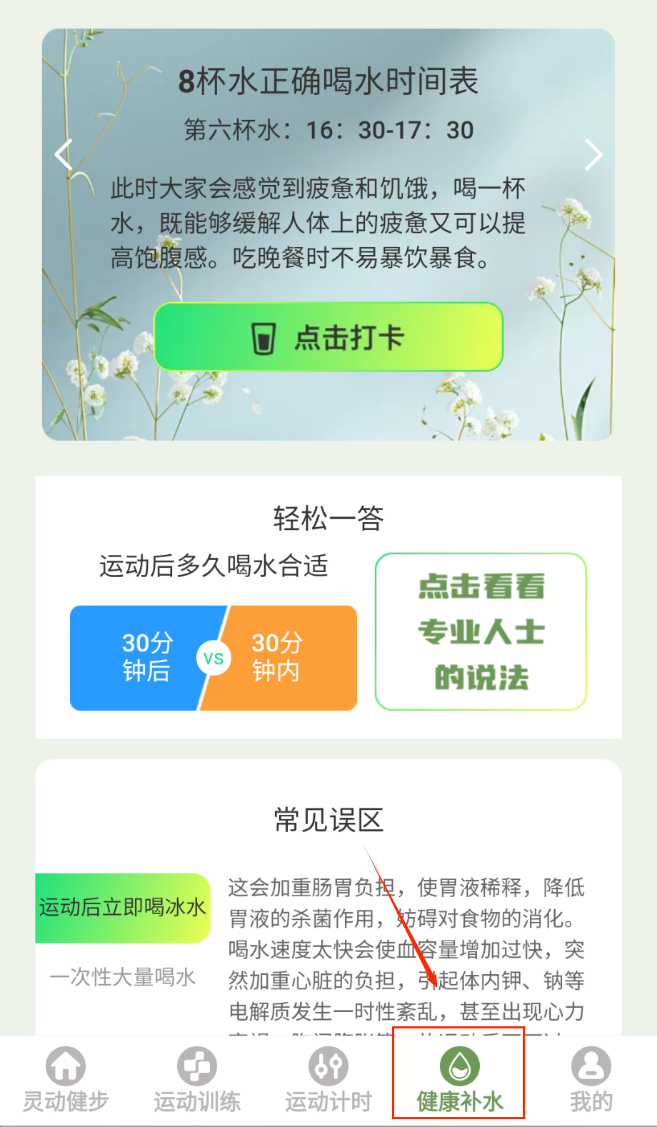 3、构建饮食、饮水、运动三维健康模型,依据消耗量推荐蛋白质、碳水等营养素比例,定时推送补水提醒形成健康管理闭环。