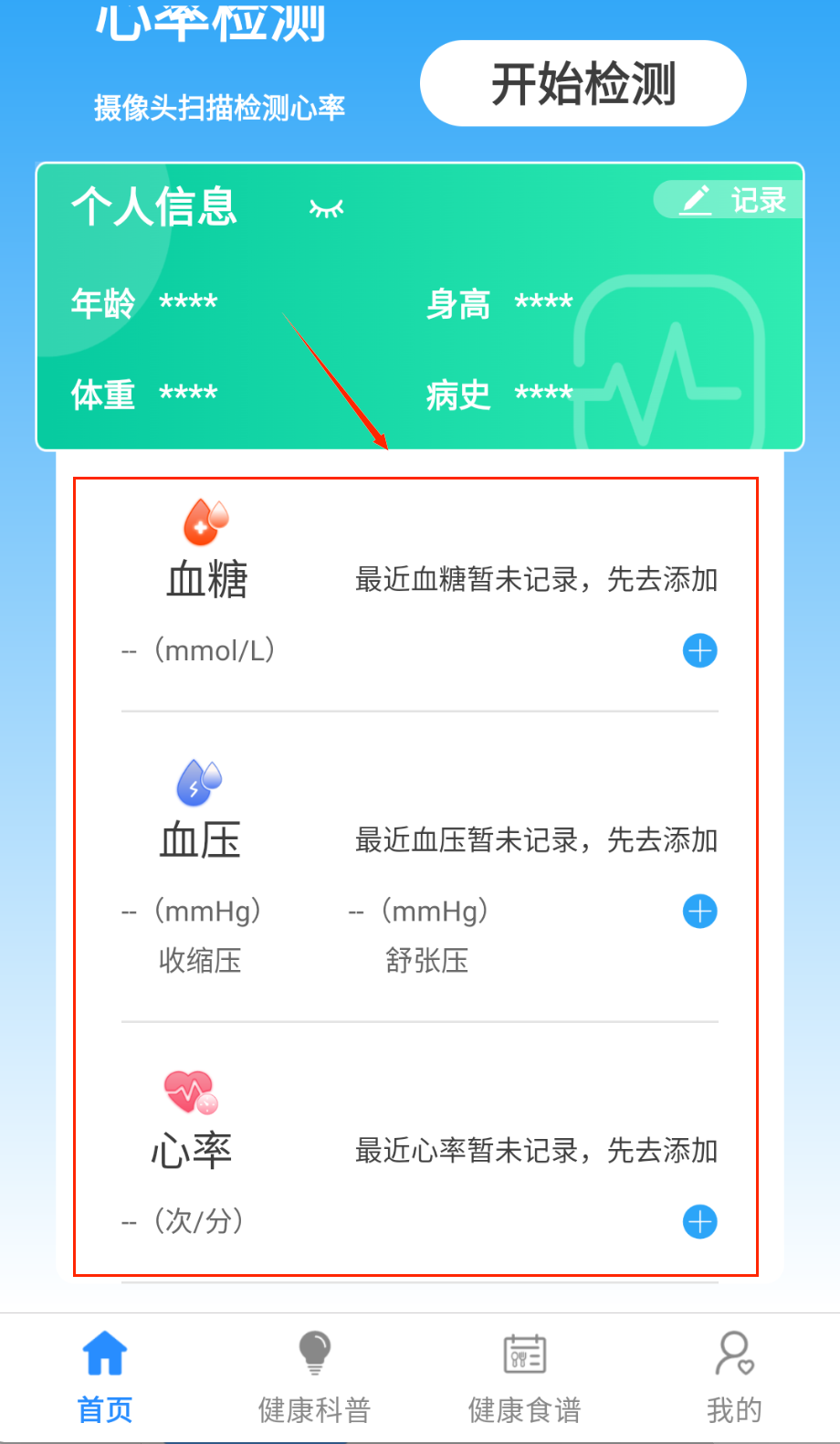 1、绑定设备后,日常健康数据将自动上传。您可手动补充饮食运动记录,所有信息整合形成完整的健康日志。
