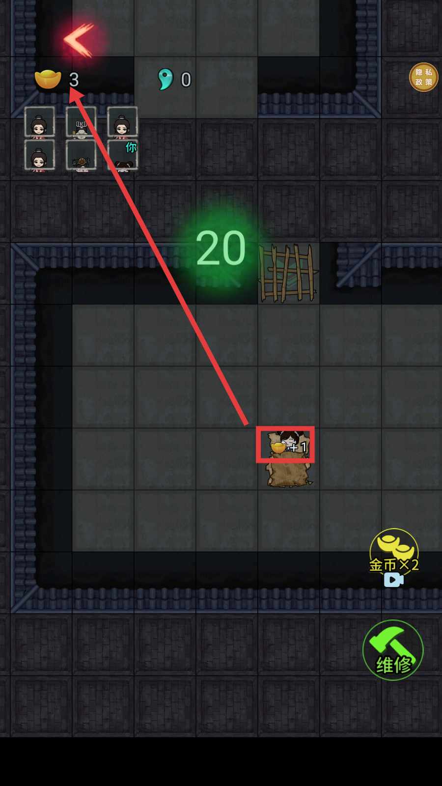 2、挑战中操纵角色与草床互动获取【元宝-+1】,逐步积累到3,为后续建筑建造储备资源。