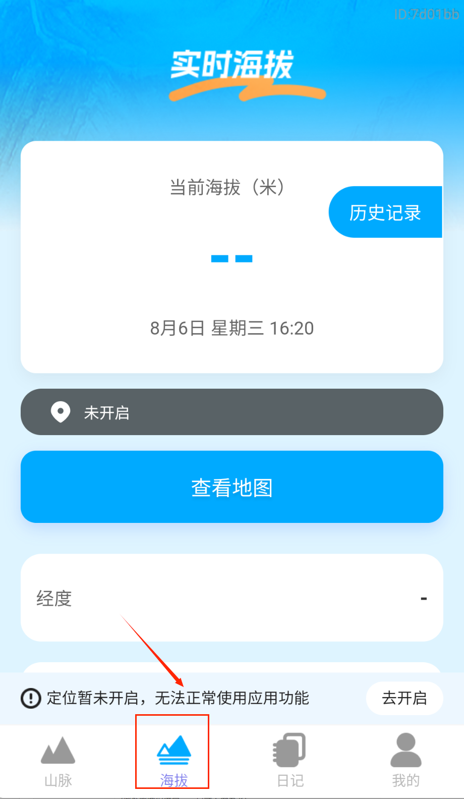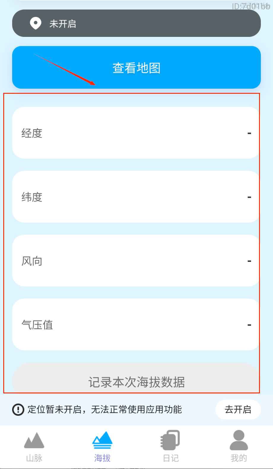 3、 行进中保持应用后台运行,实时海拔数据每10秒刷新显示,到达预设坐标点自动弹出日记编辑框提示记录当前环境与体感状态。
