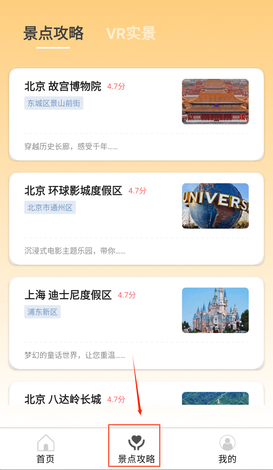 1、完成应用下载与安装流程之后,即可启动程序开始探索丰富景点资源并查阅详细信息,为出行决策提供充分依据。