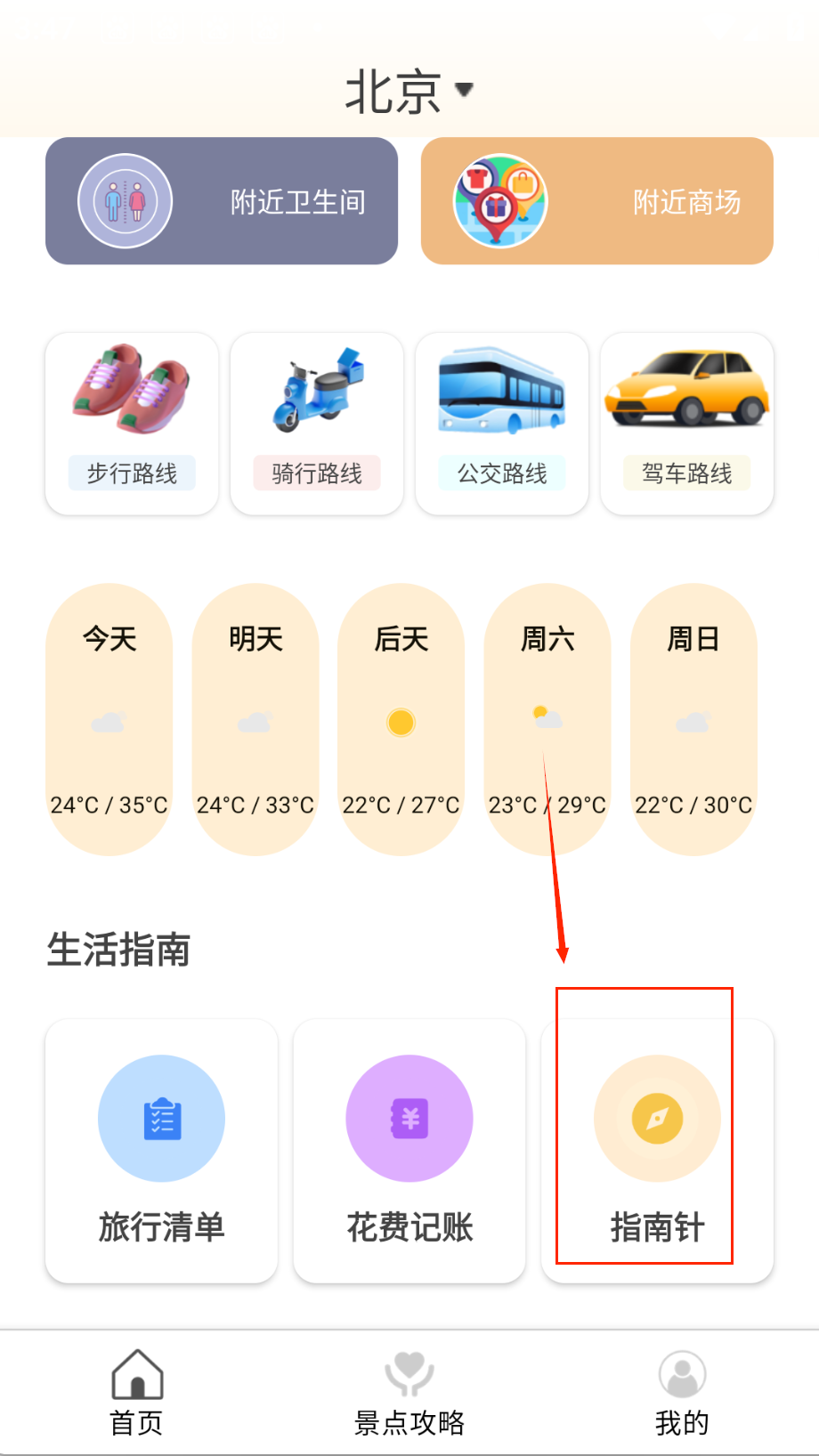 4、旅行过程中可随时开启指南针功能进行方向定位防止迷路,同时使用记账模块记录每一笔消费开支,帮助用户有效管理旅行预算。
