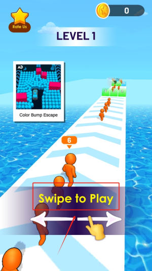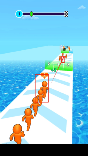 1、控制人群跑酷:进入游戏,操控人群在赛道奔跑,熟悉左右滑动控制水平移动,掌握人群移动节奏,开启闯关挑战。
