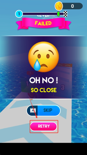 3、重新开始:如果游戏失败,点击“RETRY”按钮重新开始当前关卡。