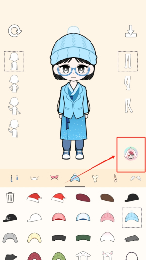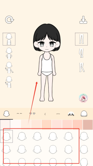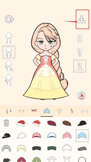 4、保存角色:完成设计后,点击右上角的下载图标保存你的角色设计。