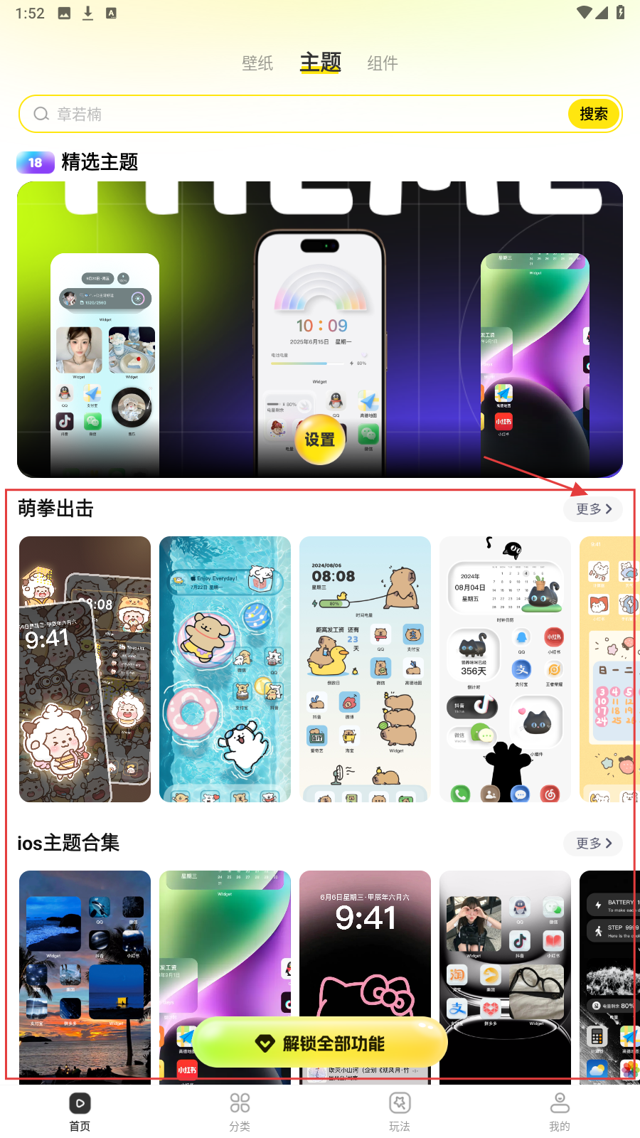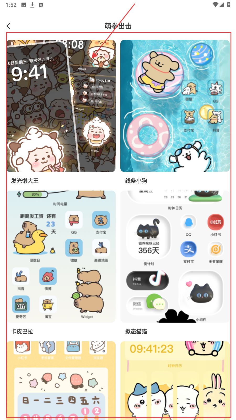 1、进入主题界面,选【萌拳出击】分类,点击【更多】浏览该分类下全部主题样式。
