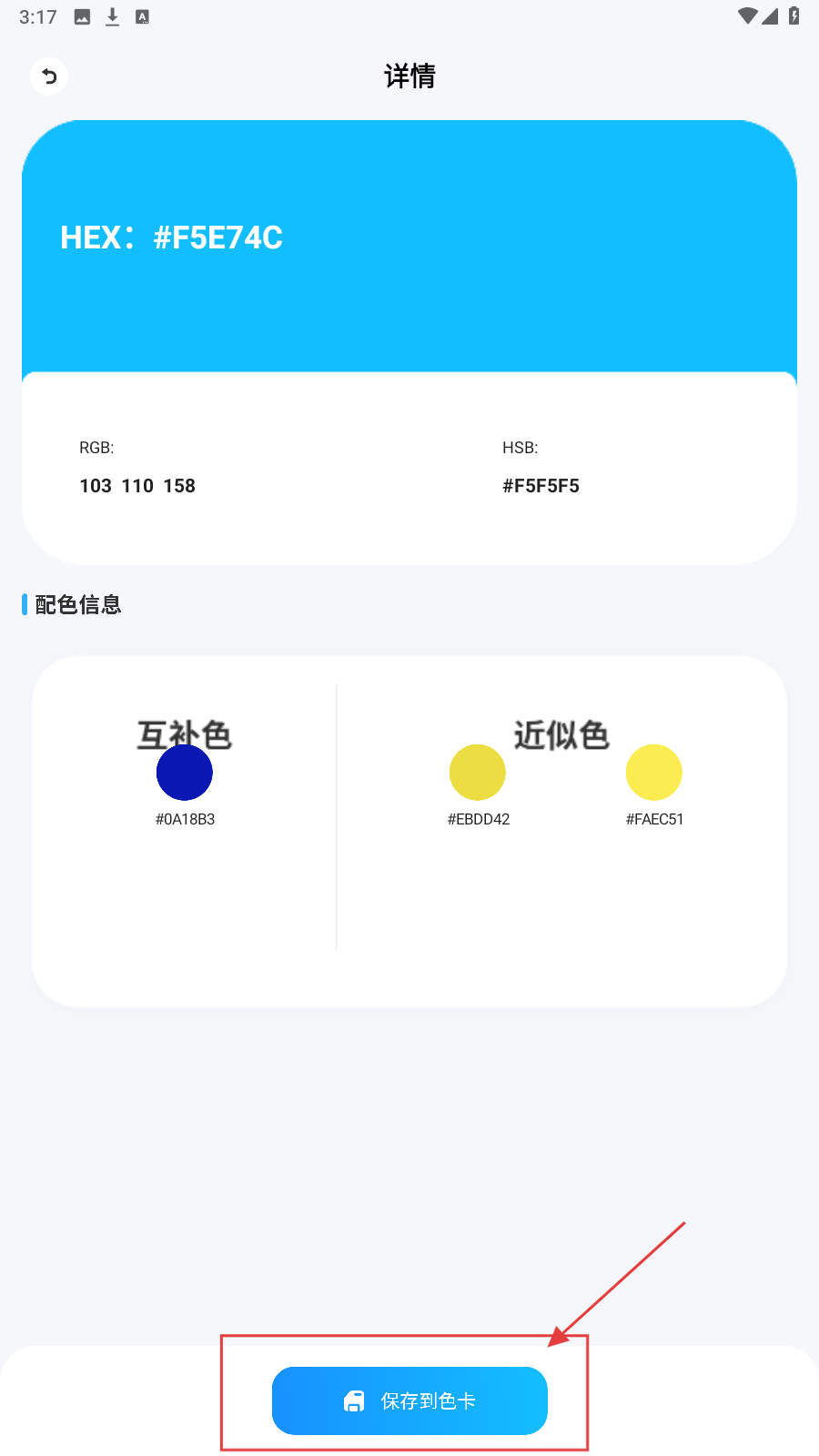 4、查看颜色详情后,点【保存到色卡】,可留存该颜色方便后续使用。
