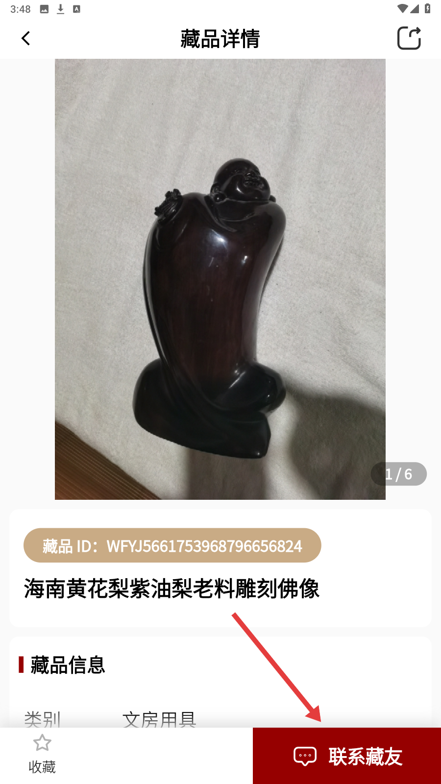3、查看【藏品详情】,点【联系藏友】,可与其他藏友交流藏品信息。