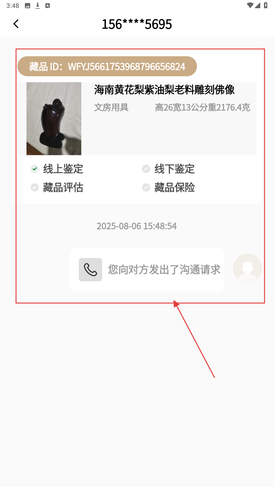 4、进入沟通页,可查看藏品服务及沟通请求状态,推进交流鉴定事宜。
