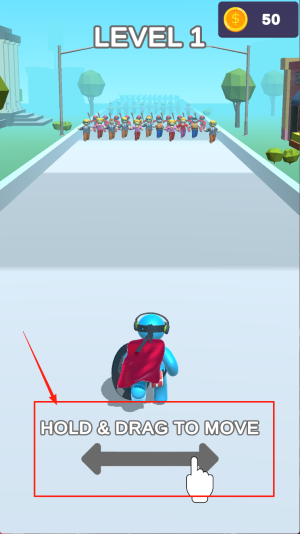 1、开始移动:看到“50 LEVEL 1 HOLD&DRAG TO MOVE”提示后,用手指按住并拖动角色前进。