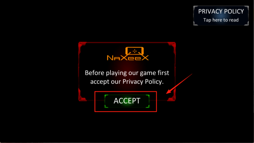 1、接受隐私政策:阅读“PRIVACYPOLICY … ACCEPT”提示后,点击“ACCEPT”按钮同意隐私政策。