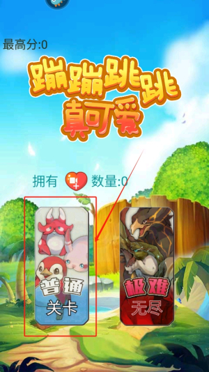 2、选择关卡:查看当前拥有的爱心数量,选择“普通关卡”或“困难无尽”模式开始游戏。