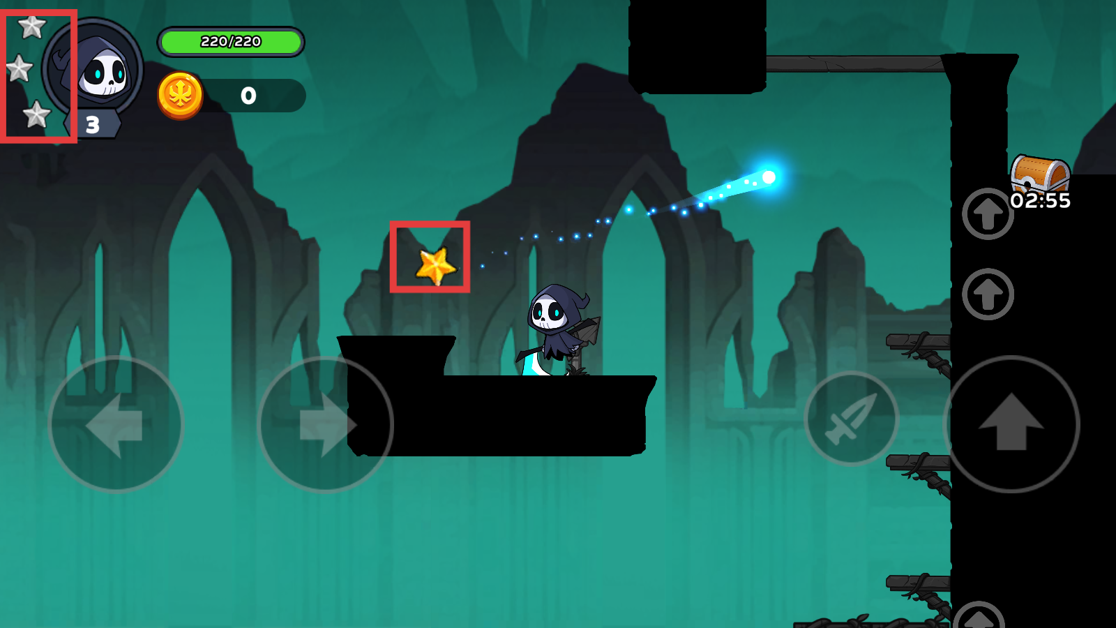 2、场景中的【黄色星星】是关键收集物,优先跳跃获取,积累星星可提升左上角评分等级,助力后续进程。