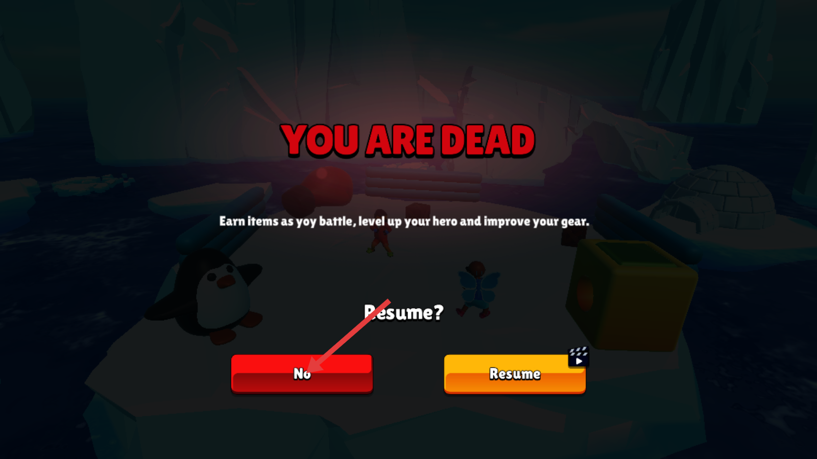 4、若战斗失败出现【YOUAREDEAD】提示,可点【Resume】复活再战,或选【No】退出,积累经验后再挑战。