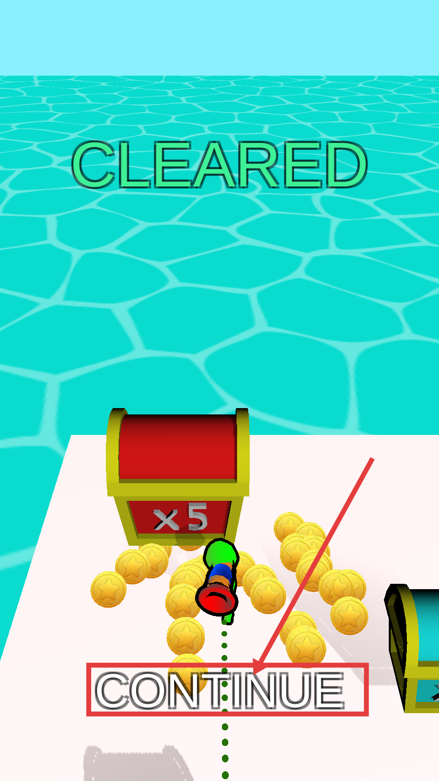 4、通关后点击【CONTINUE】按钮,开启下一关挑战,积累金币解锁更多游戏内容。