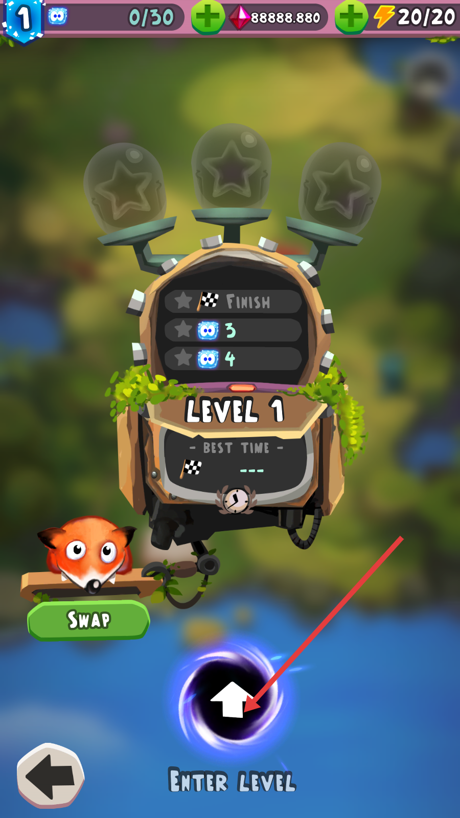 1、点击【ENTER-LEVEL】进入【LEVEL-1】,挑战收集蓝色方块,争取达成关卡目标开启冒险。
