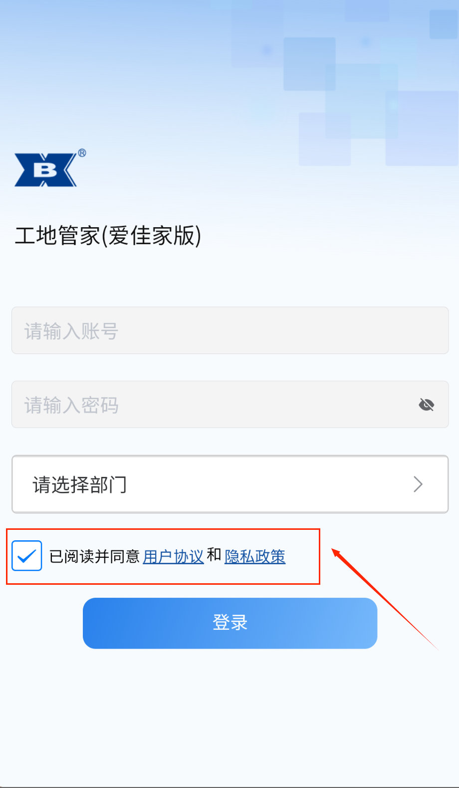 4、最后勾选同意协议那个小方框,点击蓝色登录按钮就能进入系统了,整体操作简单明了,新手也能轻松搞定。