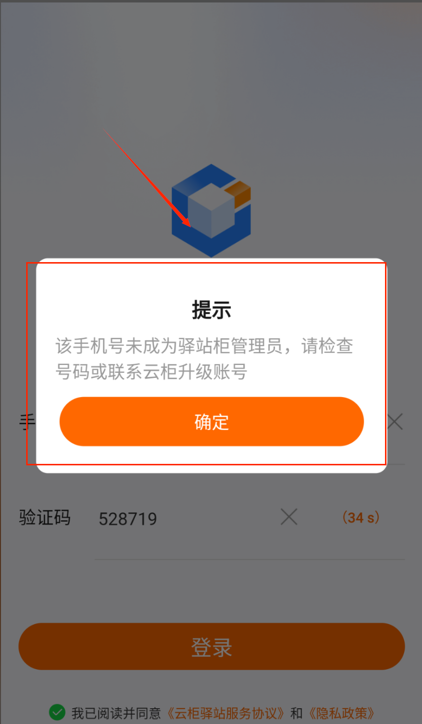 3、如果提示"未成为驿站柜管理员",先检查手机号是否正确,确认无误后需要联系客服升级账号权限才能登录。