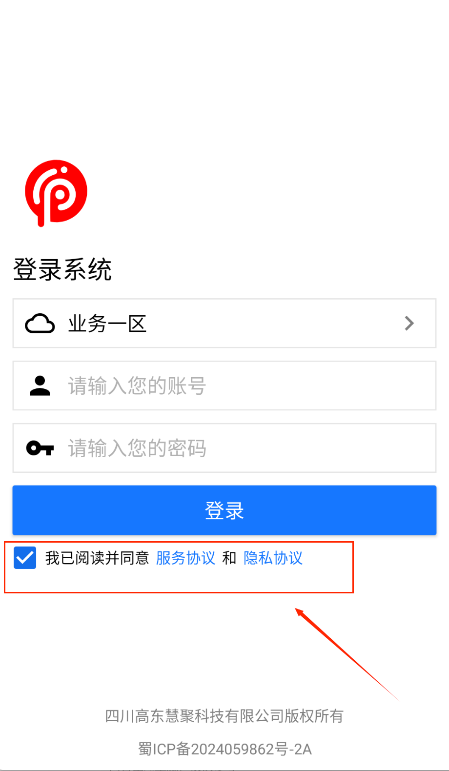 3、密码输完后别漏了最重要的一步,记得勾选底部"我已阅读并同意服务协议和隐私协议"那个小方框,不然登录按钮不会亮的。