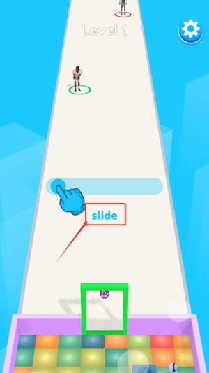 1、滑动操作:在游戏开始界面,按照提示滑动屏幕,使角色向下滑行。