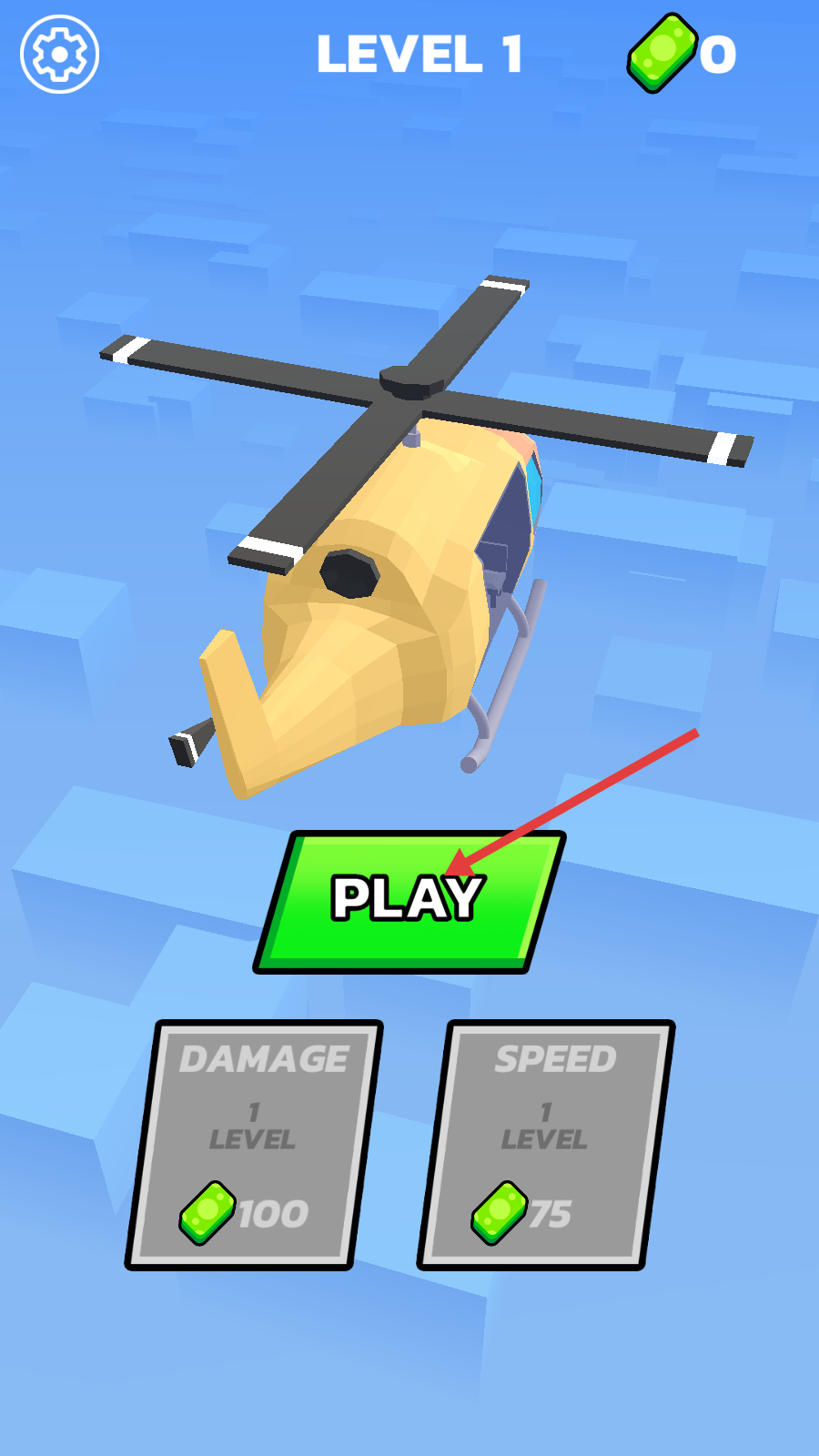1、在【LEVEL-1】界面点击【PLAY】,初始绿宝石为0,驾驶直升机开启救援任务。