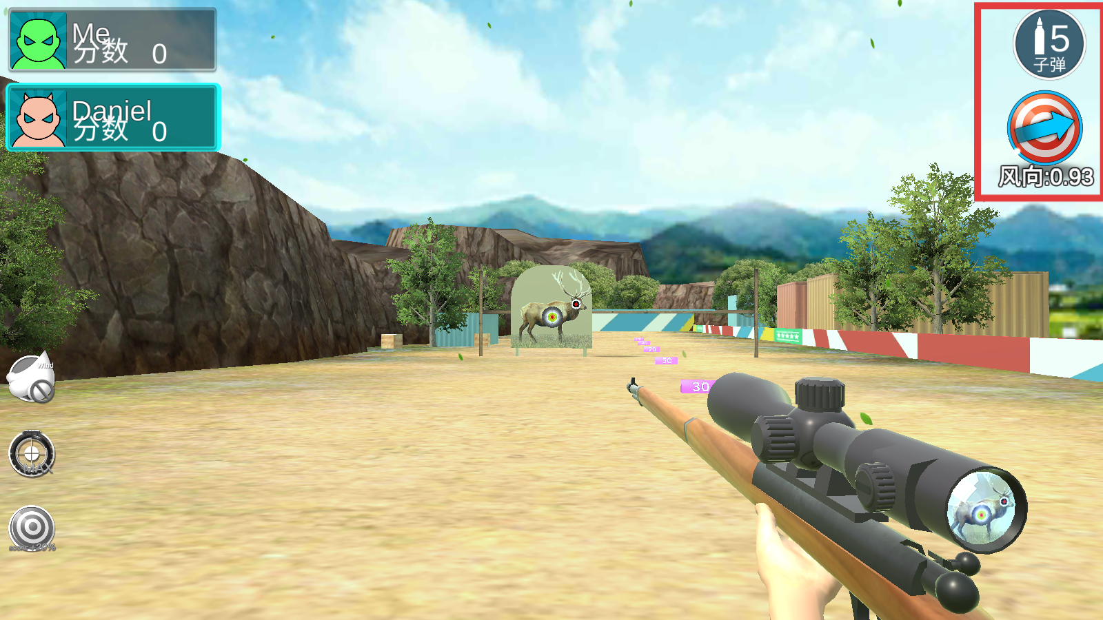 2、战斗中留意【子弹-5】与【风向-0.93】,瞄准靶标,和Daniel同步起步,力争首分。