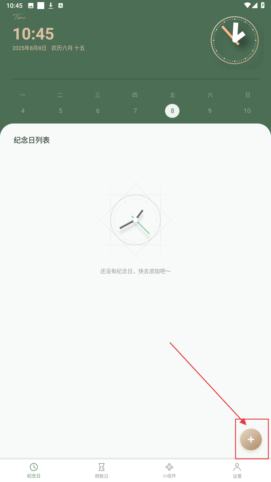1、打开应用,在【纪念日】页面,点击右下角【+】图标,进行创建。