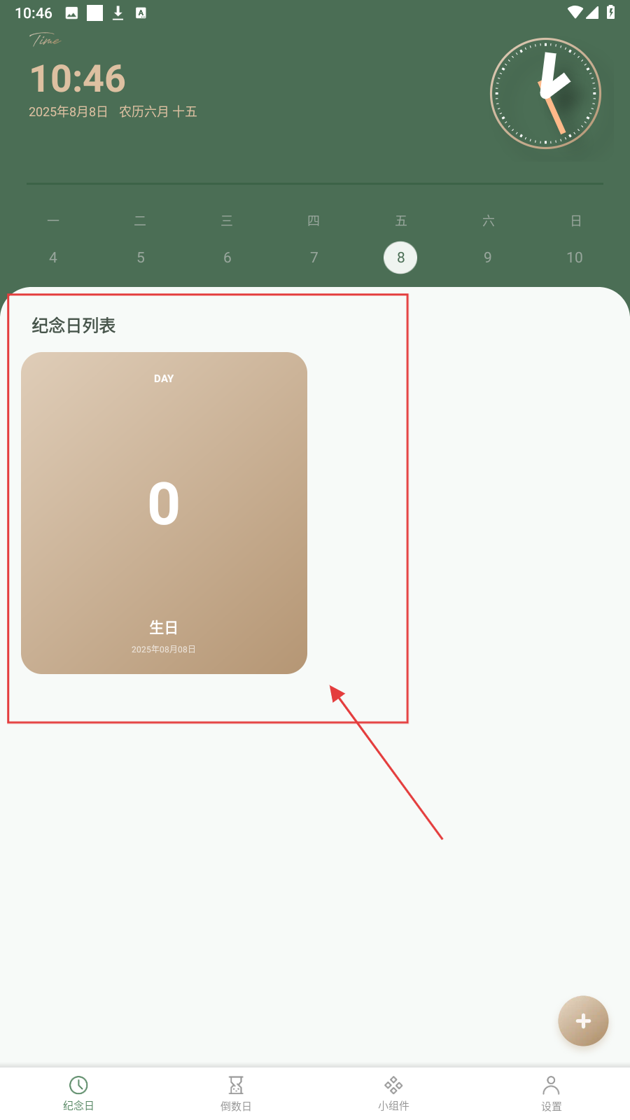 3、添加成功后,在【纪念日列表】下即可查看所添加的纪念日。