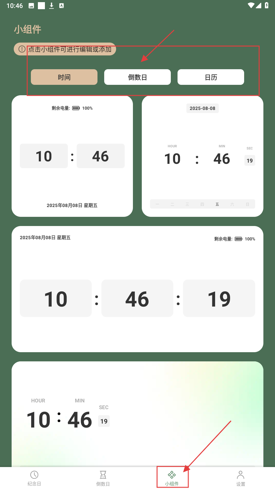 4、切换至【小组件】页面,添加喜欢的类型的小组件到桌面,满足个性化展示需求。