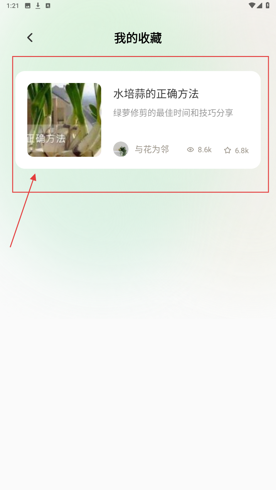 4、进入【我的收藏】,找到已存文章,随时回顾《水培蒜的正确方法》等养护技巧。