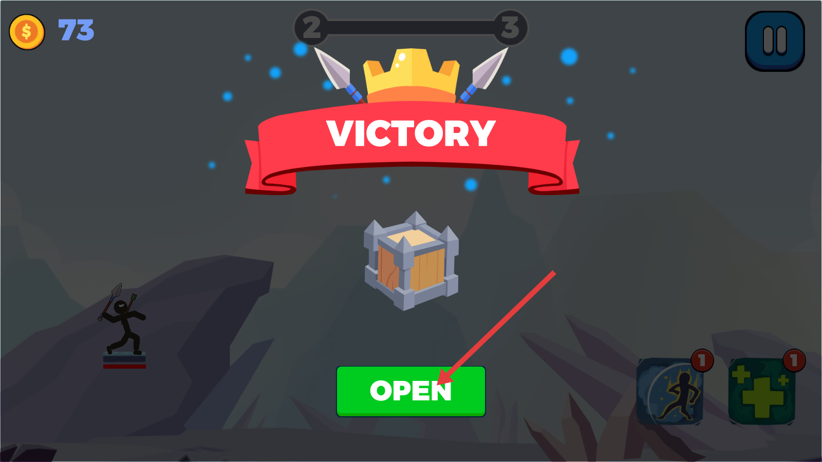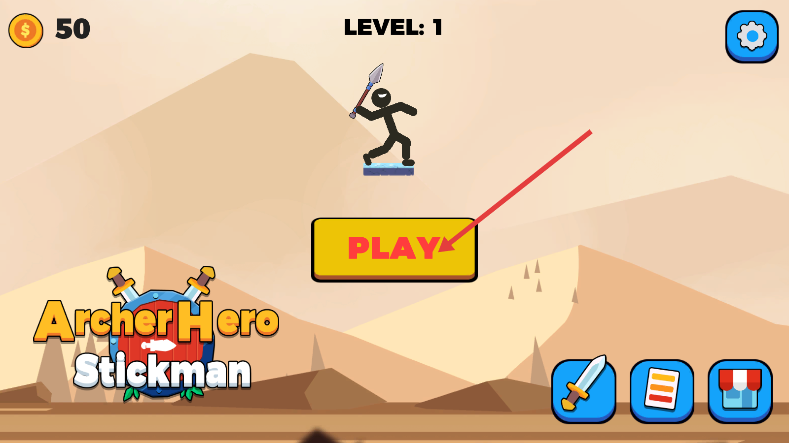 1、点击主界面【黄色PLAY】,以持矛火柴人开启Level1战斗。