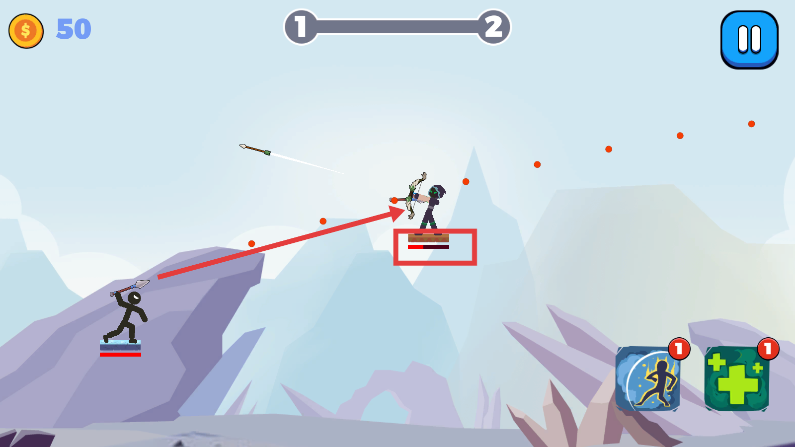 3、优先攻击敌方【弓箭手】,精准投掷武器消耗其血量,推进战局。