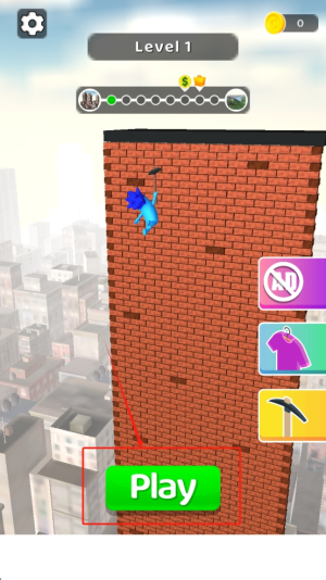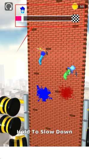 1、开启攀岩之旅:进入游戏,化身橡皮小人熟悉攀爬操作,了解墙体裂开规律,明确收集金币与冲线目标,为冒险闯关做好准备。