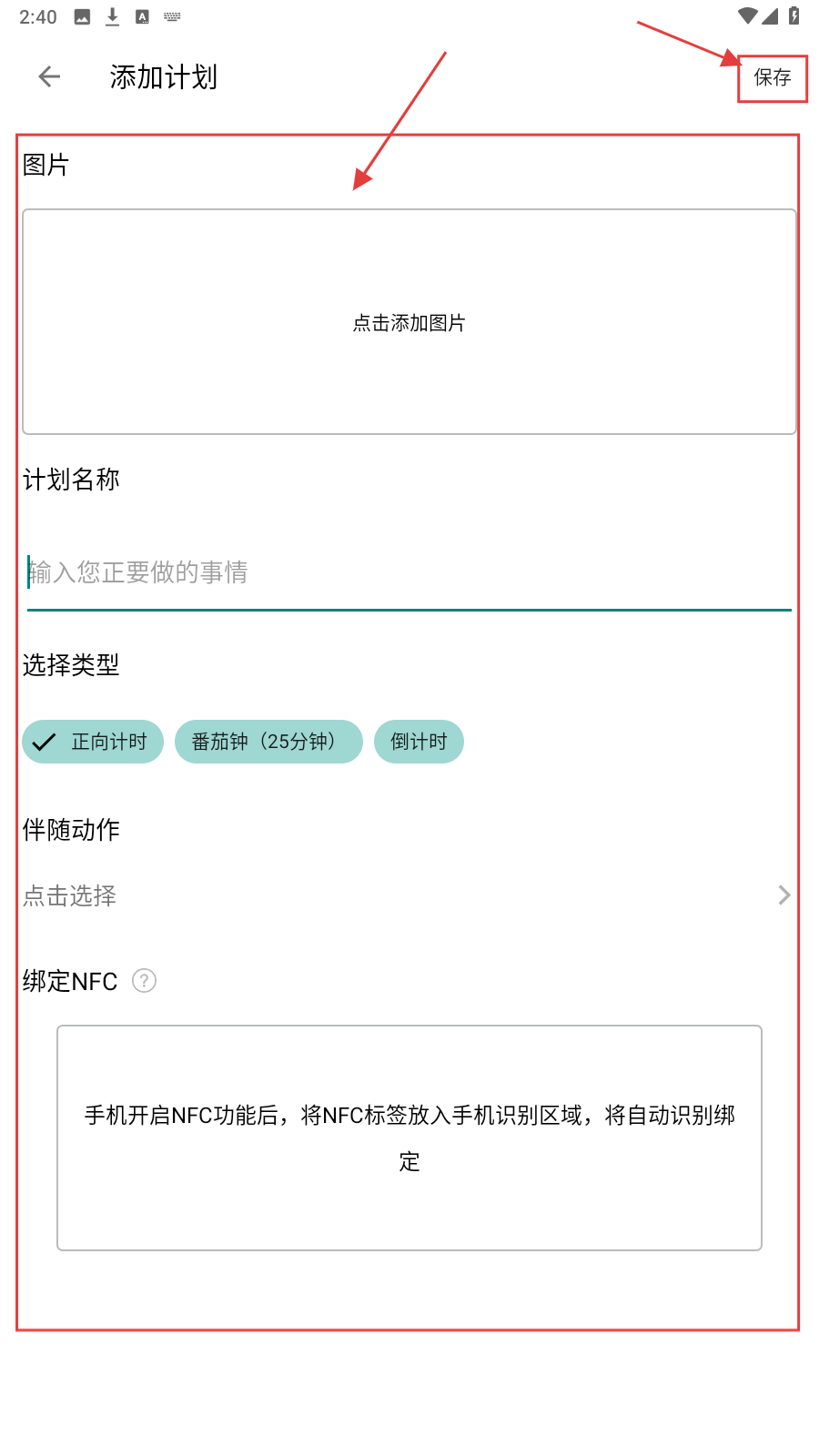 3、填【计划名称】选【类型】等,点【保存】,完成计划创建。