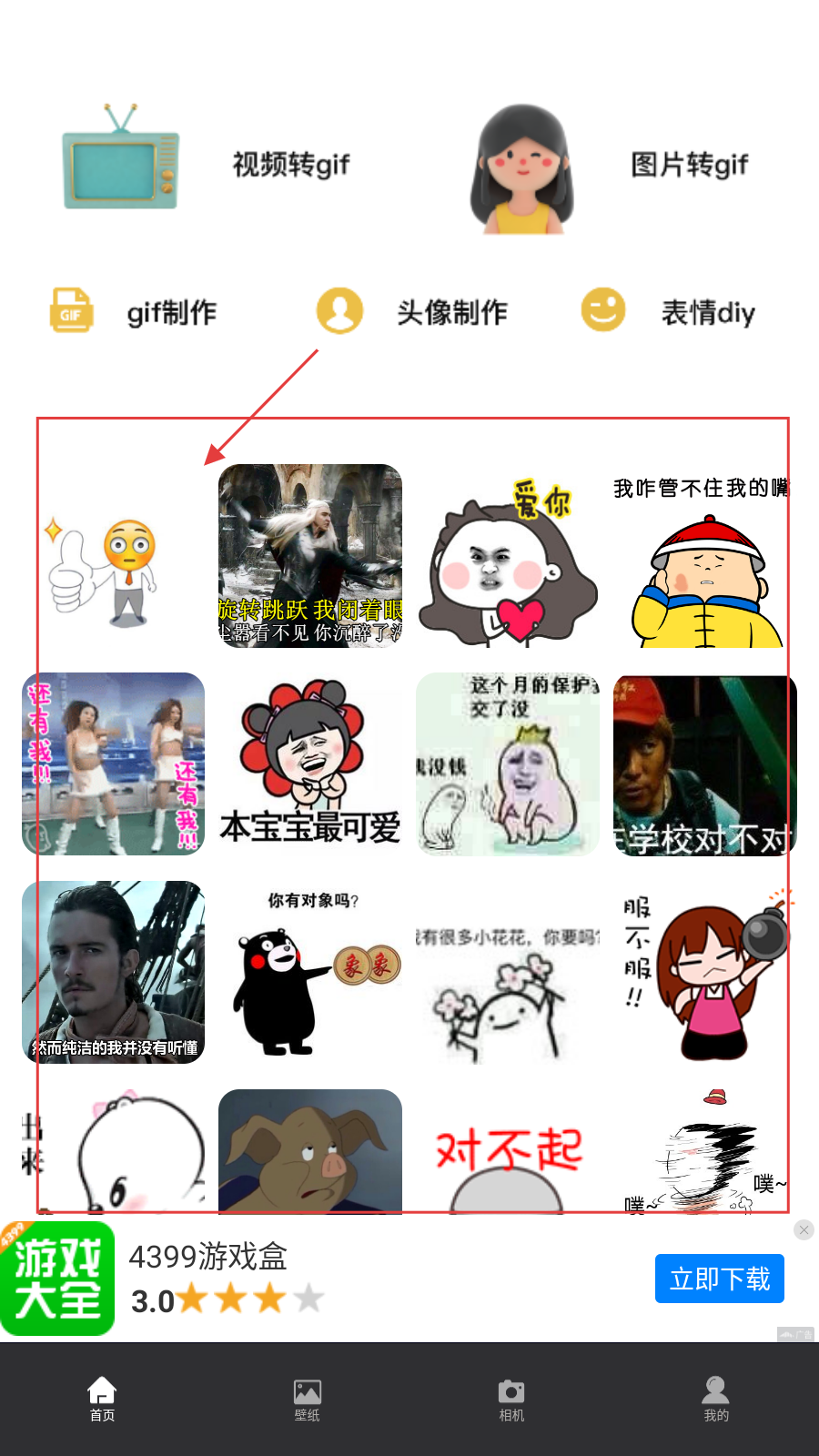 3、创作编辑平台:内置相机拍摄功能,可将照片或视频转为GIF,提供头像模板和表情素材,支持自定义调整完成专属创作。